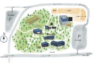 自然あふれるいなべ市の地形を利用して季節風を取り入れ、雨水貯蓄できるよう整備された森。 地中熱の活用や雨水を利用した環境に優しい施設です。 モノ・コト・トキを創造する「グリーンクリエイティブいなべ」のコンセプトを体現した地元の食材や商品を扱う店舗のある「にぎわいの森」は、地域住民との交流の場にな