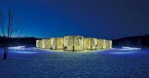 広さ1万2千平方メートルの会場には、北海道の厳しい冬の寒さを活かして作られた大小さまざまな30基の氷の造形物が並びます。このお祭りは、北海道の冬を彩る三大まつりのひとつとして多くの人々に親しまれています。 会場は夕方17時から夜21時30分までオープン。7色のライトアップが氷の造形物を美しく照ら