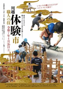 蔵造りの歴史ある街並みで知られる小江戸川越。 様々な分野の職人さん達の技に支えられ、今日に受け継がれる知蔵造りを識だけでなく全身を使って子どもたちに体感してもらう体験イベント! 大工、木挽きなどの職人技体験に加え建物解説ツアーも予定されています。