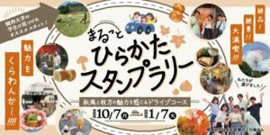 ドライブで秋を満喫できる「まるっとひらかたスタンプラリー」が開催されます!関西大学の学生が自ら歩いて選んだおすすめスポットを巡りながら、秋風と枚方の魅力がぎゅっと詰まったコースをお楽しみいただけます。スマートフォンで「まるっとスタンプラリー」と検索し、JAFのホームページから簡単に参加できます。