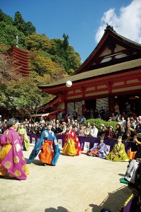 藤原鎌足公が飛鳥法興寺の蹴鞠会で中大兄皇子と共に蹴鞠をしたことが始まりとされ、「大化改新」のきっかけとなったこの故事にちなんで行われる、風雅な祭です。現在では毎年、4月29日(昭和の日)と11月3日(文化の日)に開催されています。