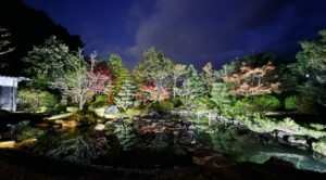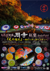 全国でも最大級の規模を誇る約150本の和傘が使用されたライトアップが行われます。今回登場する和傘タワーは、これまで以上に立体的で美しい形に仕上げられ、手作りの竹あかりは100個以上、それぞれ異なるデザインが輝きを添えます。また、「光るビー玉手水舎」は、紅葉が浮かびまるで宝石箱のようにきらめく幻想