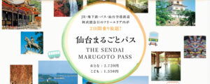 仙台を中心としたフリーエリア内の普通列車(快速含む)の普通車自由席・仙台市営地下鉄・仙台市営バス(楽天シャトルバス除く)・るーぷる仙台(観光型市内巡回バス)・宮城交通バス(秋保線)・仙台空港アクセス線・阿武隈急行(一部区間)が2日間乗り放題のきっぷです。 仙台周辺の観光地を1泊2日で巡るのにぴっ