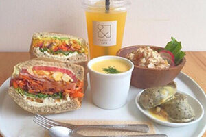 【それぞれの職人が、心を込めて創ったこだわりの絶品を体で感じ、自分のライフスタイルの一部に取り入れる。】をコンセプトにしたカフェ。 メニューは、ハーブティ、スムージー、抹茶、サンドウィッチなど身体も心も喜ぶうれしいラインナップ。 ヴィ―ガンハンバーグなどからメインが選べるお弁当、食欲をそそるガパ