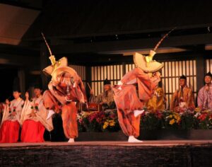 毎年9月25日と26日に開催される「こきりこ祭り」は、古代民謡「こきりこ」を中心に、五箇山の民謡が数多く披露される伝統的なお祭りです。風情ある白山宮の境内に響く笛や鼓の音は、哀愁を帯びた旋律となり、奉納される優雅な舞とともに観客を魅了します。「こきりこ祭り」は、五箇山の代表的な祭りであり、麦屋ま