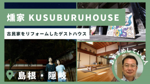 島根県・隠岐の島にある古民家ハウス「燻家(くすぶるはうす)」は、「燻ってる心を燃やそう」がコンセプト。 隠岐の島を楽しんでもらうために積極的に島の紹介をしていたり、衣食住を通して地域に根付いた活動をしています。 サスタビ編集部が実際に宿泊した際、「年貢ランチ」や「for ラオスキッズ」など、サス
