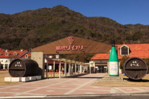 大社町は全国でも有数のハウスぶどうの名産地で、「島根ワイナリー」は、良質な地元産のぶどうを活かそうと昭和61年に創設された島根県で最も歴史のあるワイナリーです。 敷地内はワイン醸造館、ショップ、バーベキューハウス、カフェなど、見どころがいっぱいで、大型レジャー施設として今や出雲観光には欠かせない