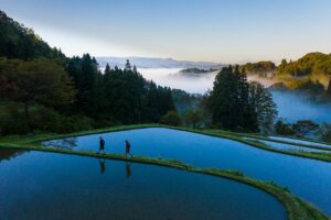 古来から耕作され脈々と受け継がれてきた美しい棚田。十日町には棚田を中心とした里山の暮らしが今も息づいています。 棚田はかつて世の中の価値の中心が「お米」であった時代からの遺産であり、日本文化の象徴の一つです。また、棚田は単にお米を育てる場所というだけでなく、ダムのような治水機能や水の浄化機能、多