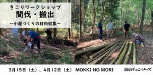 林業会社、東京チェンソーズが運営する会員制のアウトドアフィールド「MOKKI NO MORI(モッキノモリ)」。森と共に生き、遊び、学ぶ『きこりワークショップ』を年間を通して開催しています。 4月12日(土)は、小屋を作る材料を集めるための「間伐・搬出」を行います!