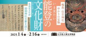 「いま見たい 能登の文化財」をテーマに、輪島で素敵な展示会が同時に開催されています! ひとつ目のテーマ「輪島・住吉神社ゆかりの宝物」では、石川県立歴史博物館が所蔵する、住吉神社に伝わる仮面や懸仏、仏像などが展示されています。もうひとつのテーマ「県指定文化財 須須神社文書を読む」では、奥能登を代表