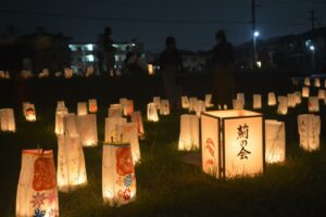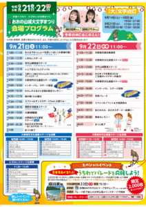 大野城市の市名の由来となった日本最古の山城「大野城」を望む四王寺山を背景に、大文字公園で開催される秋の一大市民まつり。開催期間中、四王寺山には「大」の文字が灯され、夜には子どもたちの夢を描いた「夢灯り」が会場を幻想的な光で包みます。さらに、「大野ジョーくん&まどかちゃんショー」や各団体によるステ