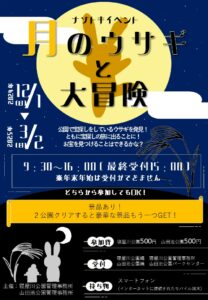 謎を解きながらお宝を見つけよう!寝屋川公園と山田池公園で、謎解きウォークイベント「月のウサギと大冒険」を開催します。クリアした方には景品をご用意!さらに、2つの公園をどちらもクリアすると、もうひとつ豪華な景品がGETできますよ!
