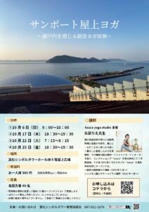 瀬戸内海の美しい風景を一望できる高松シンボルタワーの屋上広場で、ヨガイベントが開催されます。心が落ち着く空間でヨガを楽しみながら、日頃の疲れを癒したり、心を整えたりする素敵な時間を体験できます。ぜひ参加してみてください!