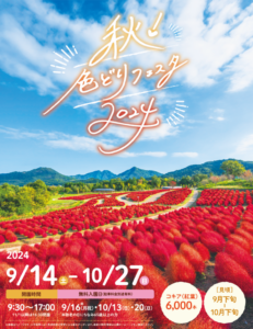 園内では、色とりどりのコスモス(6品種17万本)が美しく咲き誇り、秋が深まるにつれてコキア(6千本)の色も変わっていきます。この期間中は、さまざまなワークショップやウォーキング、アウトドアなど、楽しいイベントがたくさん開催されます。