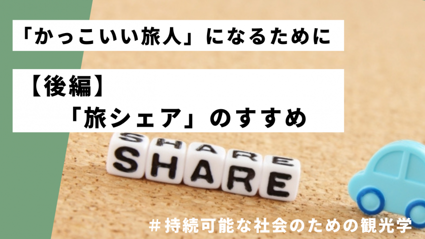 シリーズ「かっこいい旅人になるために」ではここまで、旅を通じてサステナブルな社会を実現させる「かっこいい旅人」になるために必要な心構えや理念的な事柄について紹介してきました。最終話にあたるこの【後編】では、サステナブルな旅を具体的な形にしていくための第一歩として取り組むべき、旅シェアについてご紹介します。前回の中編はこちら