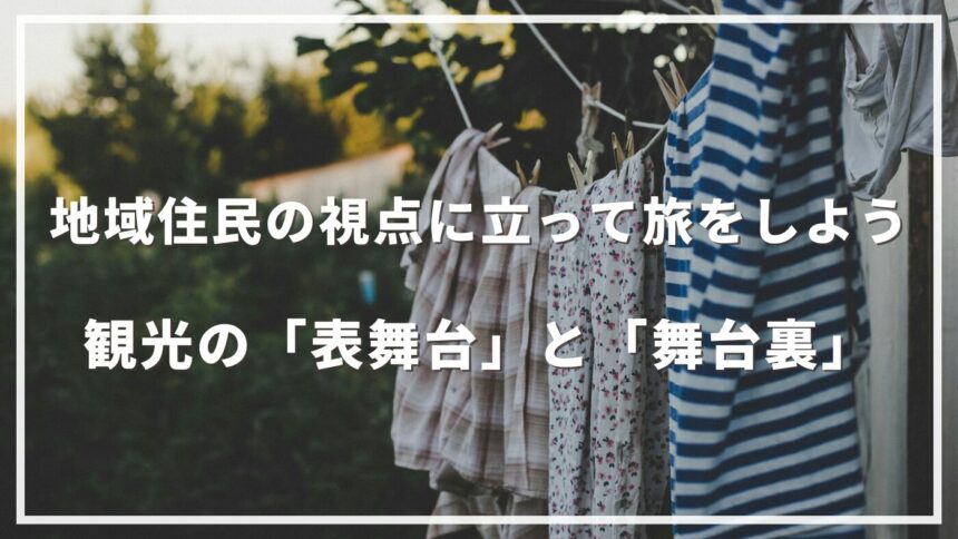 この「表舞台/舞台裏」の視点を参考にするならば、いわゆる「典型的な観光体験」は、地域住民の側からみれば自分たちの生活空間を守るセーフティネットのようでもあります。