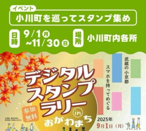 過ごしやすい気候の秋にぴったりの街歩きを楽しめるデジタルスタンプラリーが埼玉県小川町で開催! 街中を巡ってスタンプを集めながら、伝統産業や文化、川の流れや心地よい空気など、小川町の魅力にたくさん触れてみては。 町内各所設置されたスタンプスポットを巡りスタンプを集めると、抽選で特産品が当たるほか、