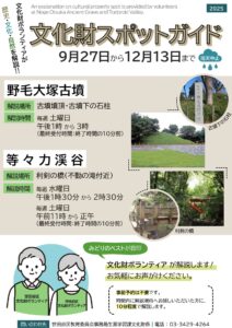 【野毛大塚古墳・等々力渓谷を現地で解説!】 区の文化財ボランティア「文化財スポットガイド」が、野毛大塚古墳・等々力渓谷をまるごと解説します!(予約不要、10分程度)