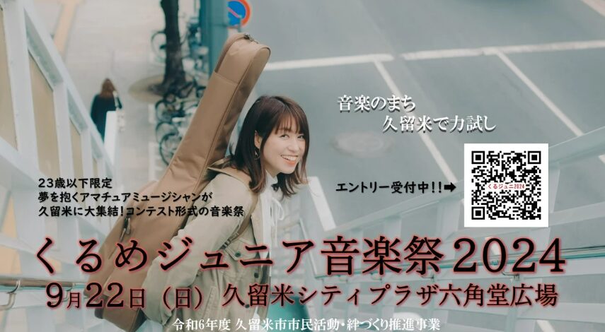 今年で7回目の開催となる「くるジュニ」は、23歳以下のアマチュアミュージシャン限定のコンテスト形式音楽祭です。全国から公募されたYouTube動画を基に一次審査を通過したファイナリスト10組が、ライブパフォーマンスで競い合います。会場には物販やキッチンカーが多数出店し、マルシェのような六角堂広場で、飲食と生の音楽を存分に楽しめるイベントです。
