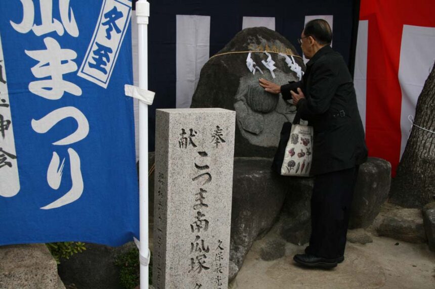 冬至の日にカボチャをお供えしてお祓いを受け、家族みんなで食べて無病息災を願う、昔からの慣習が「こつま南瓜祭り」としてお祭りになりました。今年のお祭りでは、お祓いしたカボチャを境内で蒸し上げ、持ち帰り用に提供します(限定600食)。また、ボケ封じの祈祷やお守りの授与もありますよ。境内には「こつま南瓜塚」があり、カボチャの形をした石を撫でてお参りすると元気が湧いてくると言われています。