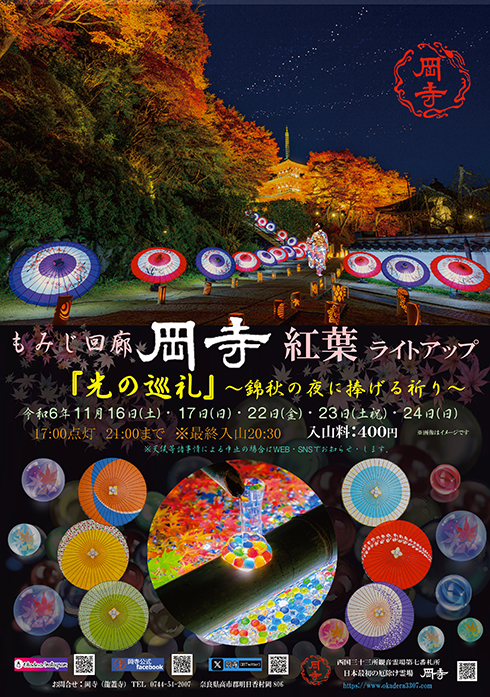 もみじ回廊岡寺紅葉ライトアップ「光の巡礼」:2024年11月16日~24日