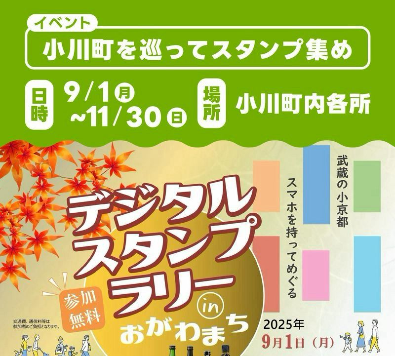 過ごしやすい気候の秋にぴったりの街歩きを楽しめるデジタルスタンプラリーが埼玉県小川町で開催!