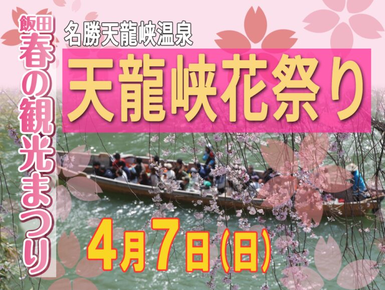 画像出典: https://tenryukyou.com/ 令和6年飯田春の観光まつり 名勝天龍峡温泉 天龍峡花祭り 開催日:4月7日(日)