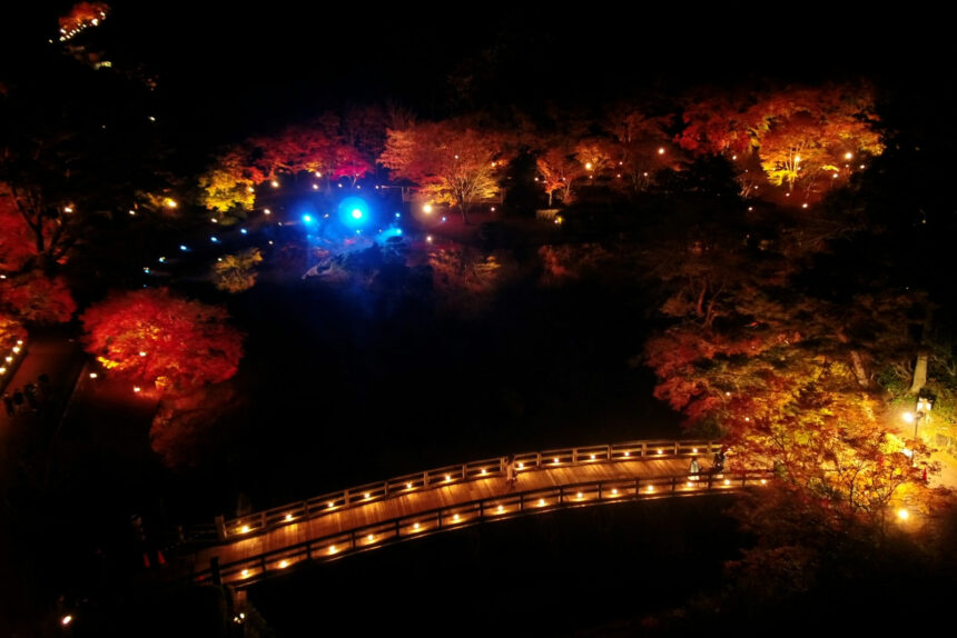 画像出典: https://www.shuzenji-kankou.com/momiji.html 修善寺虹の郷 もみじライトアップ:2024年11月16日~12月8日