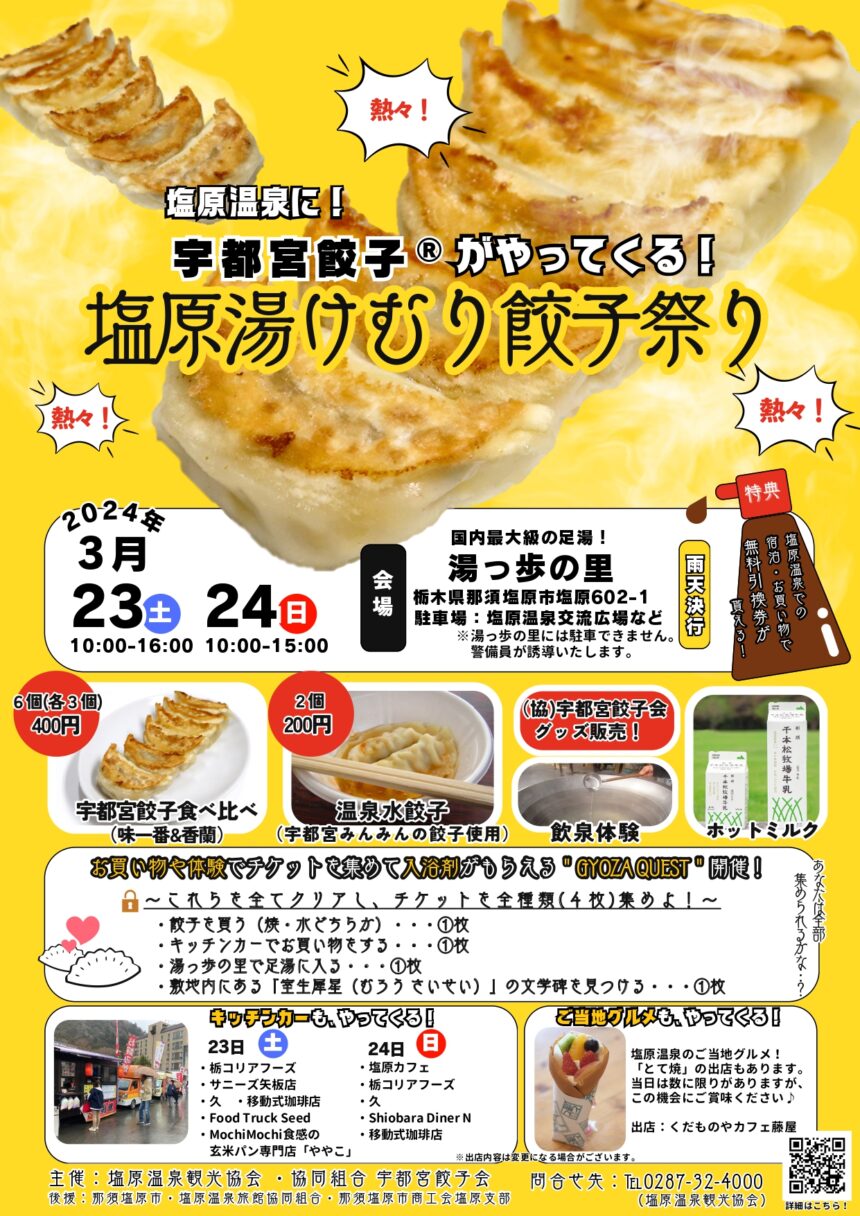 画像出典: https://www.siobara.or.jp/information/20240107/1754/ 塩原温泉に宇都宮餃子がやってくる「塩原湯けむり餃子祭り」 開催日:3月23日(土)~3月24日(日)