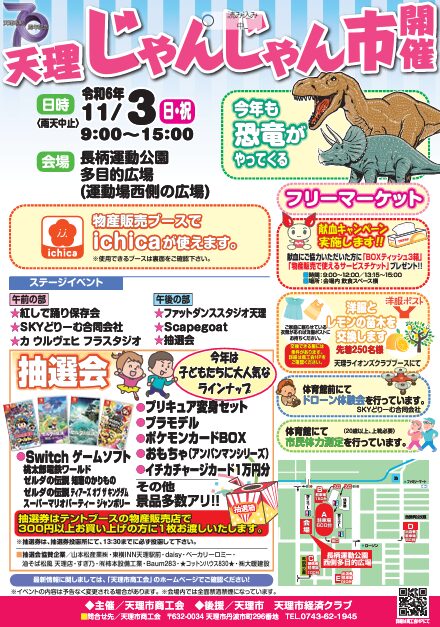 天理市の地域振興を目的に、天理市商工会が主催する大型イベントが開催されます! ステージイベントや特産品・飲食ブース、フリーマーケット、抽選会など、盛りだくさんの催しが揃い、賑やかに楽しめます。秋の青空の下、天理の魅力をたっぷり味わいに来てください。