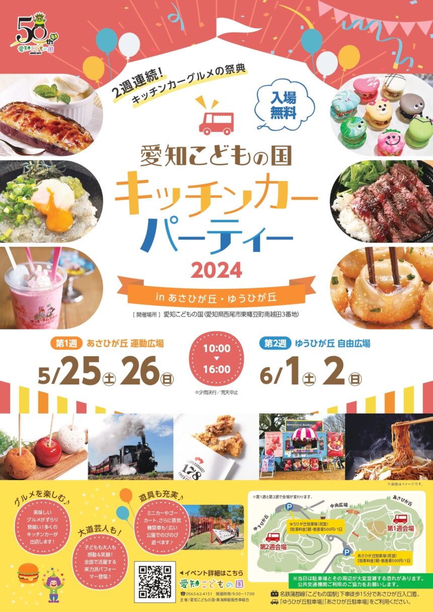 画像出典: http://kitchen-car.com/kumiai/grandprix_schedule// 愛知こどもの国キッチンカーパーティー2024:5月25日(土)~6月2日(日)