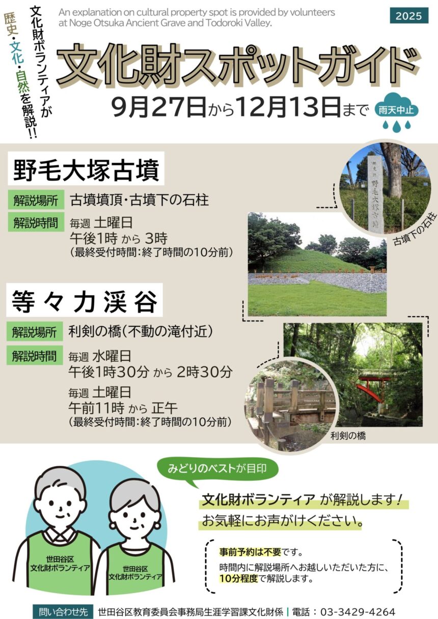 区の文化財ボランティア「文化財スポットガイド」が、野毛大塚古墳・等々力渓谷をまるごと解説します!(予約不要、10分程度)