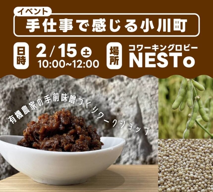 小川町のこと、味噌づくり、農業に興味のある方など歓迎♪築100年の石蔵「コワーキングロビーNESTo」が会場です。
