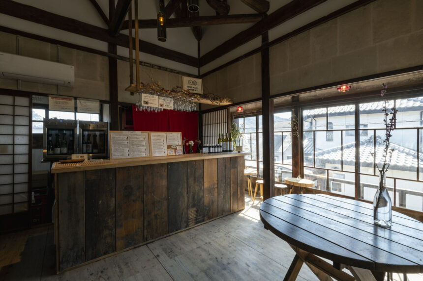 玉成舎2階の直売所では、自社商品はもちろん、選りすぐりの日本ワイン、代表の福島有造が杜氏を務める武蔵鶴酒造の日本酒などを少量から楽しめる角打ち、販売をおこなっています。
