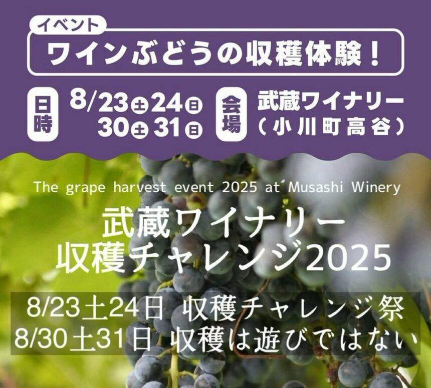 画像出典: https://linevoom.line.me/post/1175565845679533488 武蔵ワイナリー収穫チャレンジ2025 :2025年8月23日・24日・30日・31日