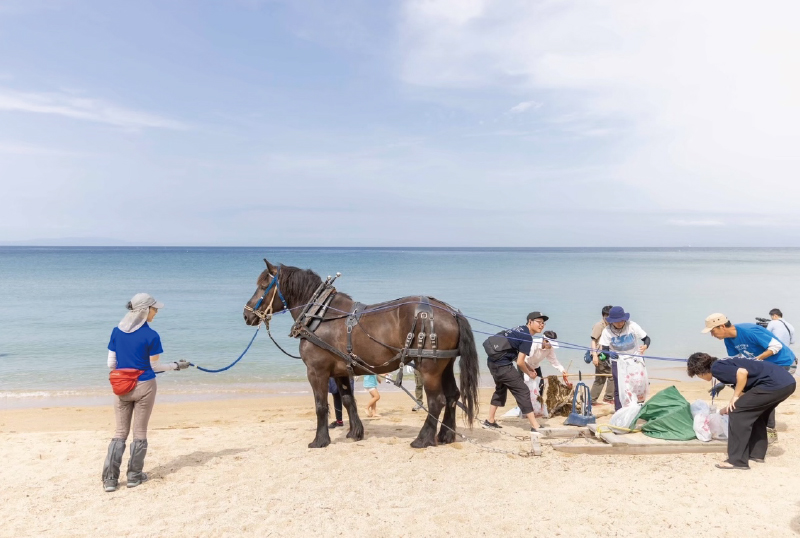 また馬がソリを引いてビーチクリーンをする「馬とのビーチクリーン」も開催しています。
