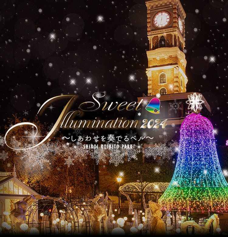北海道札幌市の白い恋人パークで毎年開催されるイルミネーションイベント。2024年の「スイートイルミネーション」は、「しあわせを奏でるベル」をテーマにしています。