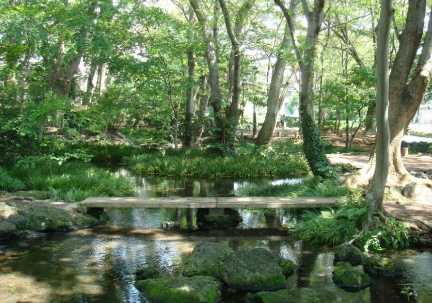 緑に囲まれた空間に富士山の雪解け水が流れ、とても神秘的な空気の流れる公園です。