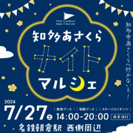 知多市で初開催となるナイトマルシェが今年、ついに登場!今年のあさくらマルシェは夜に開催され、キッチンカーやブース、ステージコンテンツなどで夜の朝倉駅が賑やかに盛り上がります。