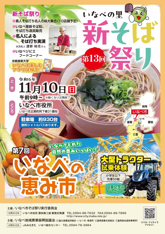画像出典: https://www.city.inabe.mie.jp/sangyo/kanko/1005528.html 第13回いなべの里新そば祭り:2024年11月10日