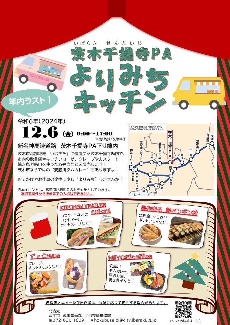 画像出典: https://www.city.ibaraki.osaka.jp/kikou/toshiseibi/hokubuseibi/event/PAevent.html 茨木千提寺PAよりみちキッチン:2024年12月6日
