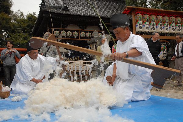 平安時代に天竺人が漂着し、綿が伝えられたとされる天竹神社で開催されるお祭り。全国で唯一、棉神様を祀る神社ならではの古式の棉打ち儀式が行われます。また、漂着した天竺人にちなみ「舟みこし」が奉納され、健康長寿を祈願する伝統のお祭りです。
