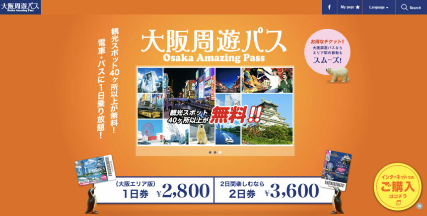 大阪を観光するなら必須の周遊パス。1日券¥2,800、2日券¥3,600で販売しています。