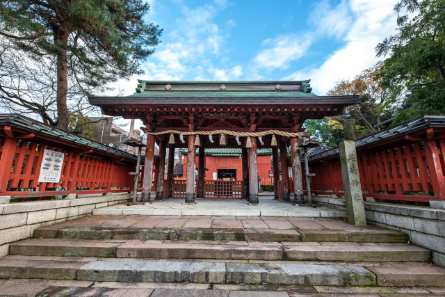 朱塗りが美しい尾﨑神社は、1643年(寛永20年)、加賀藩4代藩主の前田光高が曽祖父である徳川家康をお祀りするために金沢城北ノ丸に建てた神社です。明治時代に現在の場所に移され、「金沢東照宮」と呼ばれています。また、国の重要文化財にも指定されています。
