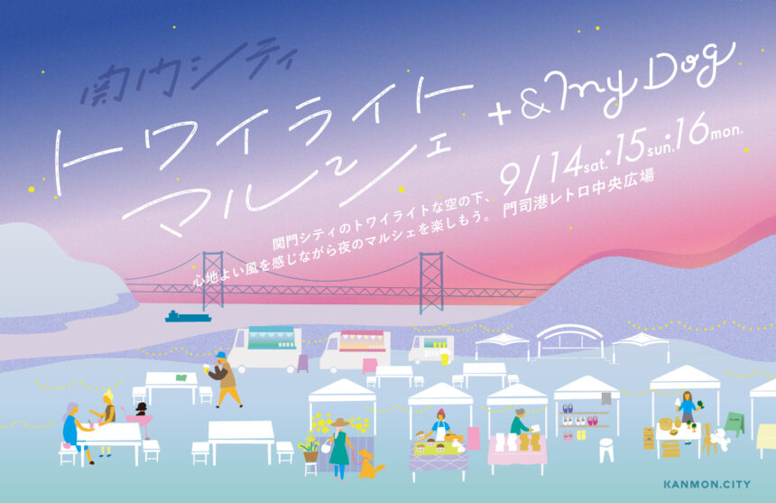 関門シティのトワイライトに染まる空の下、心地よい夏の風を感じながら夜のマルシェを楽しみませんか?夏の終わりを一緒に過ごす、特別なひとときをお届けします。