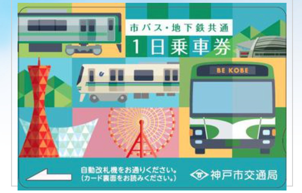神戸市街地エリアの電車に1日乗り放題の乗車券と、対象観光施設1施設に入場できる施設利用券がセットになったチケットです。