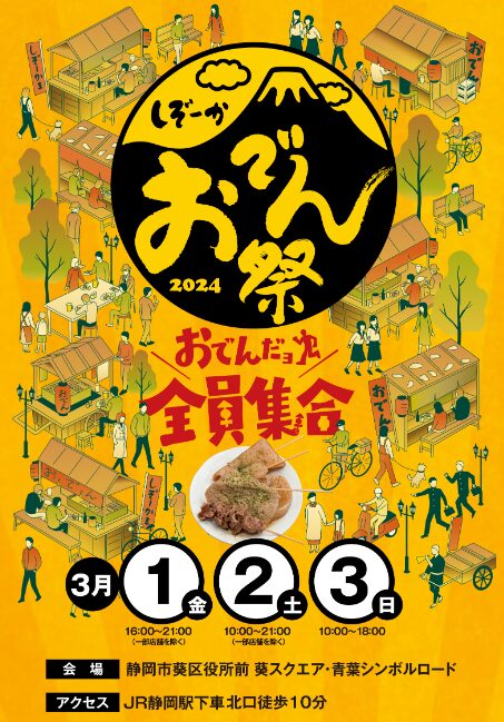 | 主催者 | 【静岡おでん祭実行委員会】静岡おでんの会、静岡商工会議所、静岡市ホテル旅館協同組合、静岡市まちづくり公社、公益財団法人するが企画観光局 |