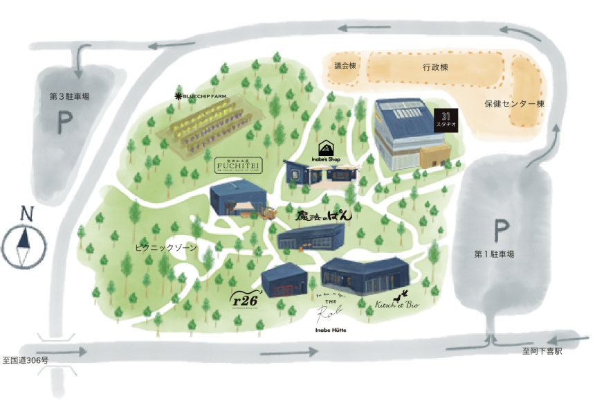 モノ・コト・トキを創造する「グリーンクリエイティブいなべ」のコンセプトを体現した地元の食材や商品を扱う店舗のある「にぎわいの森」は、地域住民との交流の場になっています。