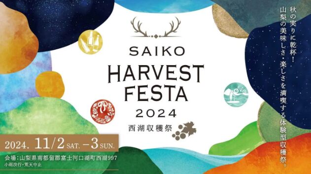 画像出典: https://event-yamanashi.com/saiko-harvest-festa2024/ SAIKO HARVEST FESTA 2024 〜西湖収穫祭〜:2024年11月2日~3日