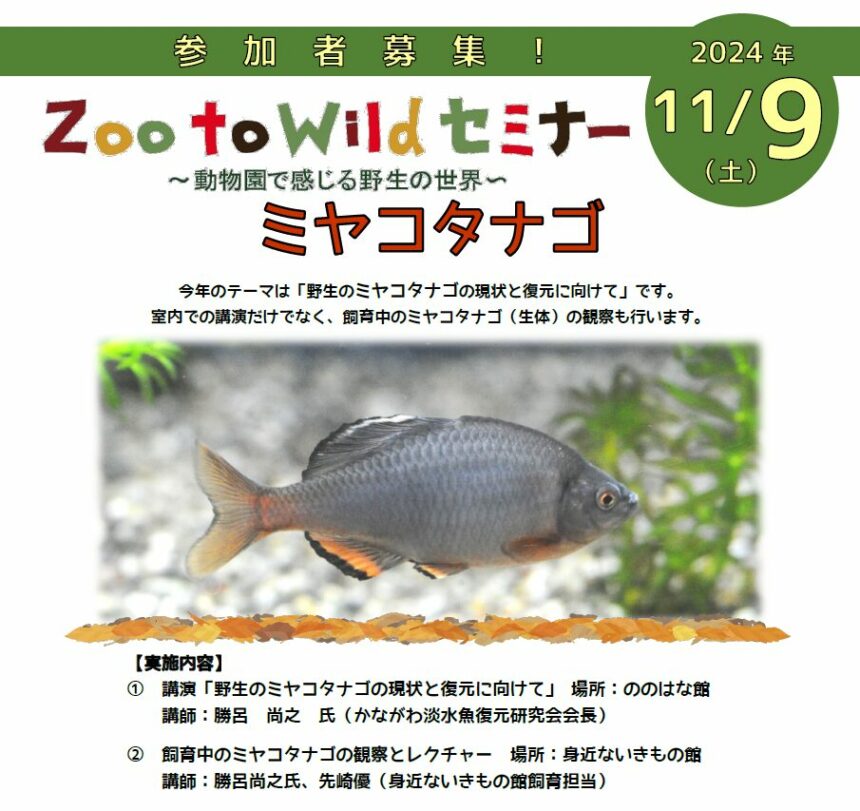 Zoo to Wild セミナー「ミヤコタナゴ」:2024年11月9日